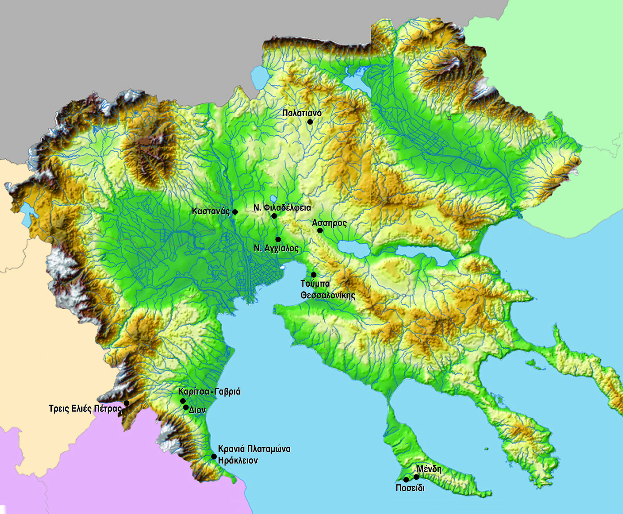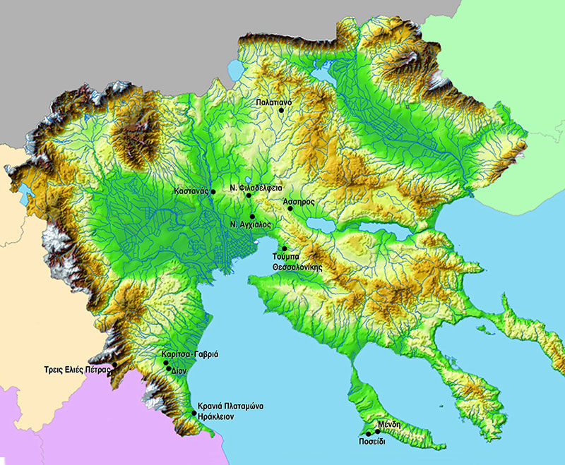 Οι θέσεις των ανασκαφών που παρουσιάζονται στη θεματική ενότητα Προς τη γένεση των πόλεων.