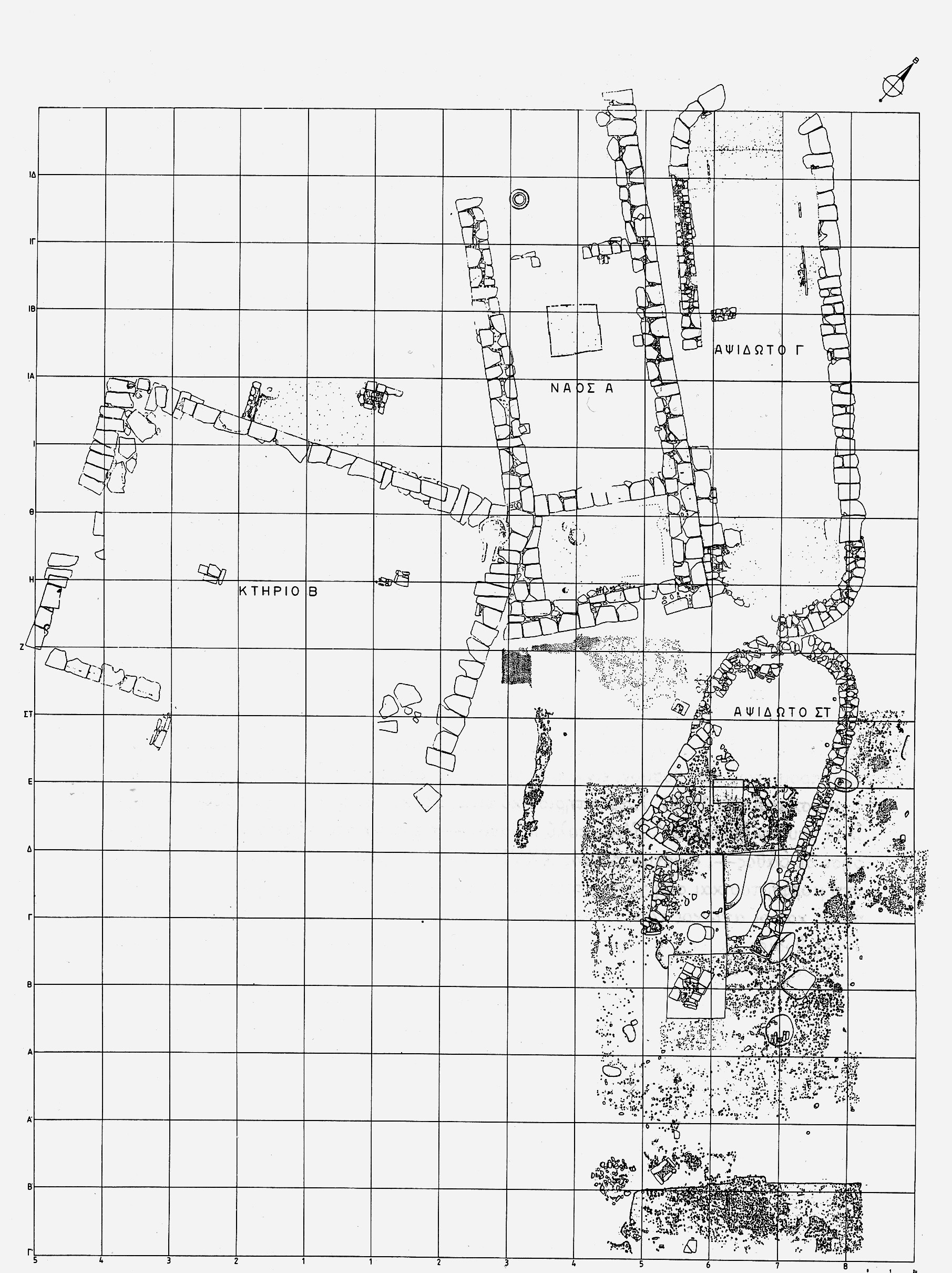 Στα τέλη του 6ου αι. π.Χ. κατασκευάζεται ένα ακόμη κτίριο, το κτίριο Β, το οποίο βρίσκεται στη νοτιοδυτική γωνία του ανεσκαμμένου χώρου. Είναι ορθογώνιο, με μήκος 20 μ. και πλάτος 16 μ., η χρήση του ωστόσο δεν έχει προς το παρόν εξακριβωθεί. Ένα μικρό τετράγωνο δωμάτιο προστέθηκε στα βορειοανατολικά του, στο β' μισό του 4ου αι., όταν πλέον το ίδιο το κτίριο είχε πάψει να λειτουργεί.