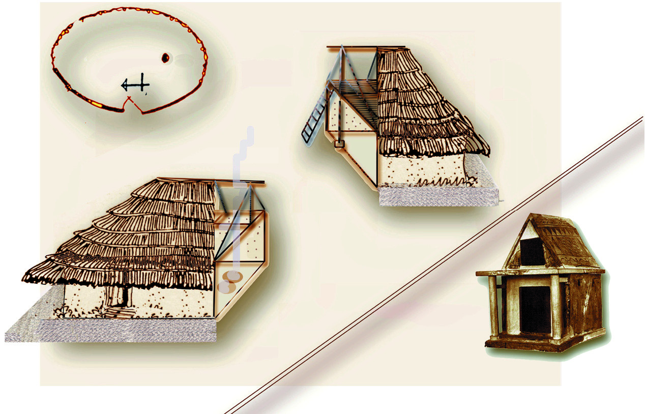 174 Τα αψιδωτά σπίτια επιβίωναν στην περιφέρεια του μηκηναϊκού κόσμου από παλιότερα και έγιναν κυρίαρχος τύπος των Σκοτεινών Χρόνων. Βλ. Α.Μ. Ainian, «Late Bronze Age Apsidal and Oval Buildings in Greece and Adjacent Areas», BSA 84, 1989, 269.
