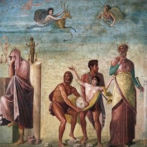 Όσο για την ανθρωποθυσία, θα πρέπει να λάβουμε υπόψη σε ποιες περιπτώσεις τελούνταν και ποιοι θεοί την επέβαλαν. Συνοπτικά εδώ θα αναφέρουμε ότι ανθρωποθυσίες επιζητά η Άρτεμις, προστάτιδα του κυνηγιού και των κανόνων του, όταν οι κυνηγοί παραβαίνουν τους κανόνες του κυνηγιού και σκοτώνουν ζώα όχι από ανάγκη αλλά ως επίδειξη και από αλαζονική υπεροψία (αυτή λ.χ. ήταν η περίπτωση του Αγαμέμνονα). Ανθρωποθυσία επιβάλλει και ο Διόνυσος σε περίπτωση άρνησης της λατρείας του (Μινυάδες, Προιτίδες, γυναίκες των Θηβών). Επίσης, μέσω της ανθρωποθυσίας του πιο εκλεκτού μέλους της κοινότητας επιδιώκεται και η σωτηρία της πόλης από απρόσμενους κινδύνους. Η κόρη του Ηρακλή, λ.χ., η Μακαρία, προσφέρθηκε να θυσιαστεί, όταν το μαντείο είπε ότι η νίκη των Ηρακλειδών εναντίον του Ερεχθέα δεν θα ήταν δυνατή χωρίς ανθρώπινο θύμα. (Εικ. 62)