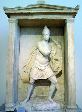 Επιτύμβιο ανάγλυφο του Αριστοναύτη. Πρόκειται για ένα από τα τελευταία μνημειακά αττικά επιτύμβια του 4ου αι. π.Χ., φιλοτεχνημένο γύρω στο 320 π.Χ. Εδώ δεν έχουμε πλέον ένα ανάγλυφο, αλλά ένα κανονικό άγαλμα τοποθετημένο μέσα σε ναΐσκο. Ο νεκρός, ένας νέος άνδρας με κοντό γένι, εικονίζεται ως μαχόμενος πολεμιστής, με θώρακα, κράνος και ασπίδα στο αριστερό χέρι και τη χλαμύδα να ανεμίζει πίσω του. Στο δεξί χέρι, που έχει σπάσει, κρατούσε ξίφος. Τα γυμνά πόδια φανερώνουν ότι ο εικονιζόμενος δεν βρίσκεται πλέον στον κόσμο των ζωντανών.
