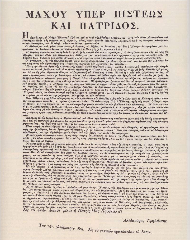 - Η επαναστατική προκήρυξη του Αλέξανδρου Υψηλάντη.