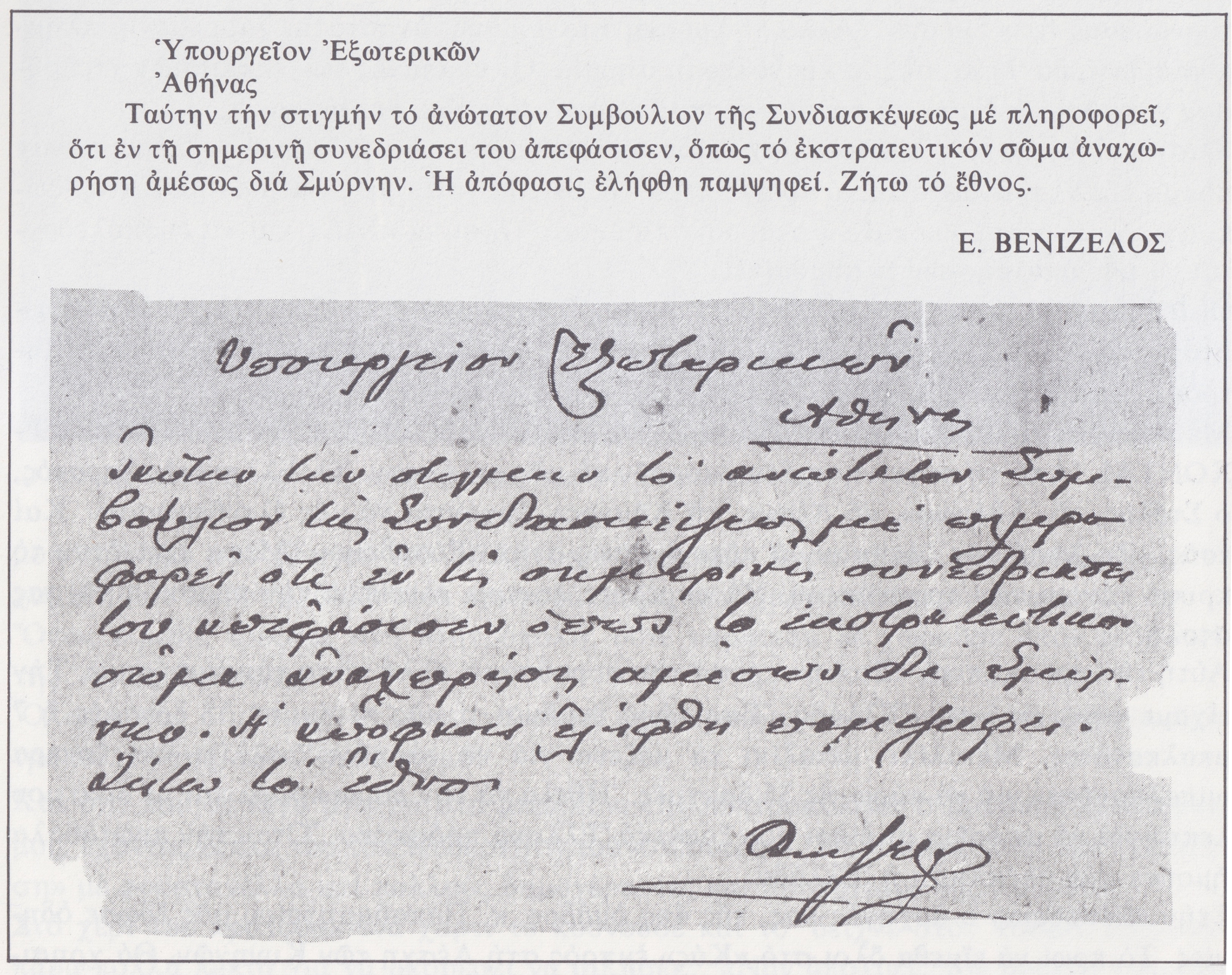 - Τηλεγράφημα του Ελευθερίου Βενιζέλου