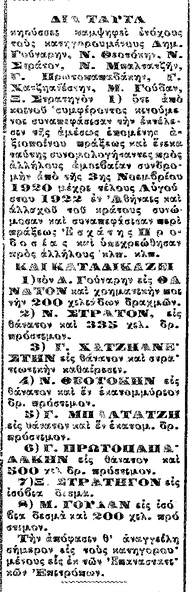 - Απόσπασμα της καταδικαστικής απόφασης του Στρατοδικείου
