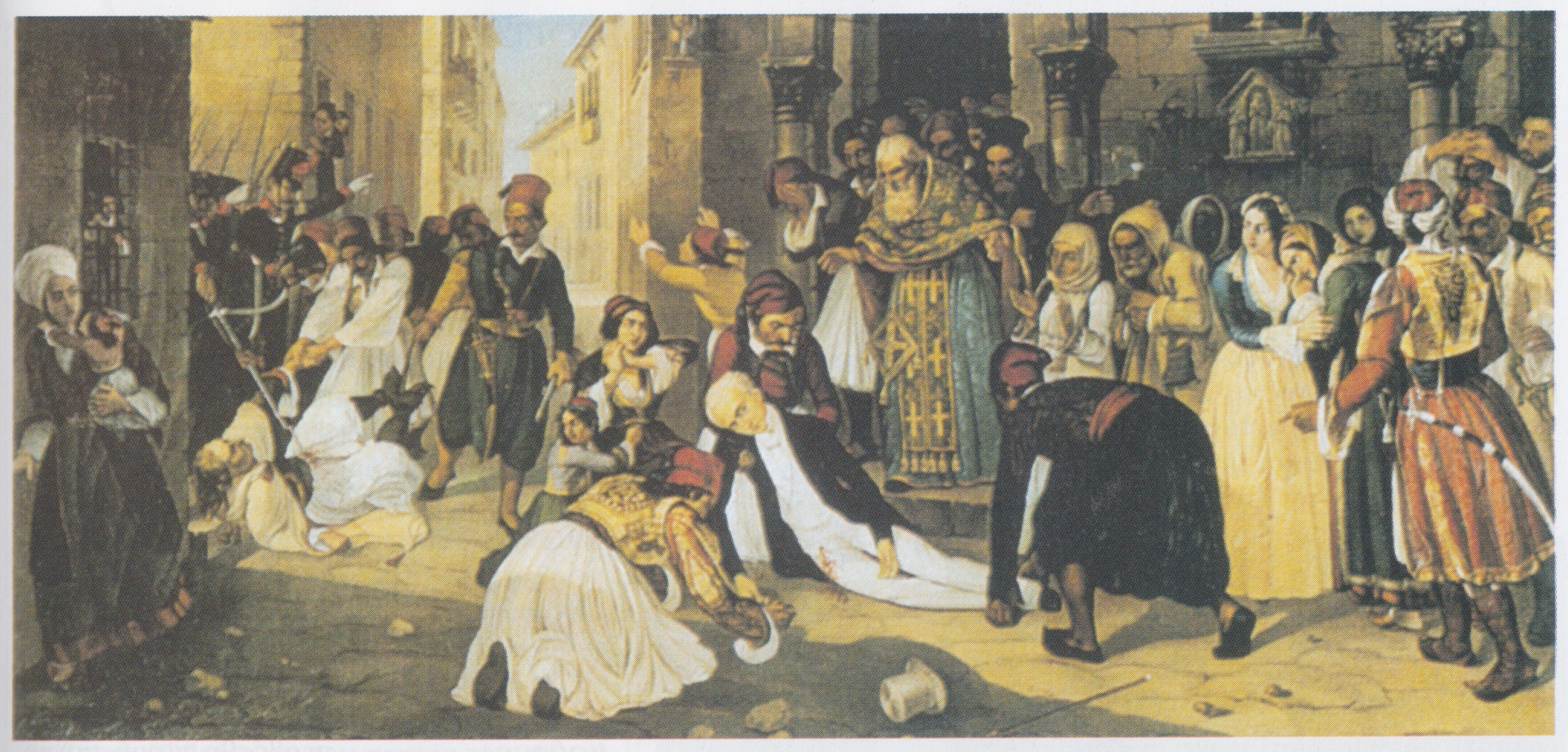 «Εστεκόμην εις την εκκλησίαν», διηγείτο εις πολίτης καθ’ ην στιγμήν εισήρχετο εις το καφενείον ο Εξόριστος, «έμπροσθεν της εισόδου, όταν ήλθον οι δύο Μαυρομιχάλαι. Ο Γεώργιος, αφού ησπάσθη την εικόνα, παρήγγειλεν εις ένα στρατιώτην, όστις τον συνόδευε, ν’ ανάψει λαμπάδα εις τον Άγιον, και ύστερον εστάθη μέσα, ακουμβών εις το φύλλον της θύρας. Ο κλήτωρ της Αστυνομίας, κατά την συνήθειαν, έδωκεν είδησιν ότι έρχεται ο κυβερνήτης, και οι Μαυρομιχάλαι συνεννοήθησαν ευθύς με τα νεύματα. Μόλις εκείνος επάτησε το κατώφλιον, και αυτοί, ενώ εχαιρέτα, τον εκτύπησαν σχεδόν εις την αυτήν στιγμήν, ο Γεώργιος με μαχαιρίδιον, και ο Κωνσταντίνος με πυροβόλον. “Τι σας έκαμα;…”, αυτό μόνον τον ήκουσα να ειπεί, και τον είδα να πέσει νεκρός. Την περασμένην Κυριακήν, και χθες ακόμη, ήλθον οι δύο Μαυρομιχάλαι εις τον Άγιον Σπυρίδωνα, και καθώς σήμερον, εστάθησαν εις την αυτήν θέσιν με τον αυτόν, ως φαίνεται, σκοπόν. Το παράξενον είναι ότι, προ ενός μηνός και περισσότερον, ο αστυνόμος του Ναυπλίου, μαθών ότι ο Γεώργιος Μαυρομιχάλης είχεν αγοράσει εξ πιστόλας από ένα Τήνιον έμπορον, το είχεν αναγγείλει ευθύς με το μέσον του διοικητού Αξιώτου εις τον κυβερνήτην. Αυτός όμως δεν έδωκε την παραμικράν προσοχήν, και δεν είναι αμφιβολία ότι με κανέν από αυτά τα όπλα σήμερον εφονεύθη».