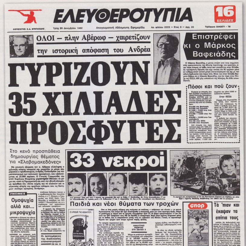Αναζήτηση στα περιεχόμενα της λογοτεχνίας στον ιστορικό χρόνοΠρωτοσέλιδο της εφημερίδας «Ελευθεροτυπία» για τον επαναπατρισμό των πολιτικών προσφύγων του Εμφυλίου Πολέμου