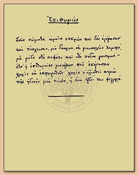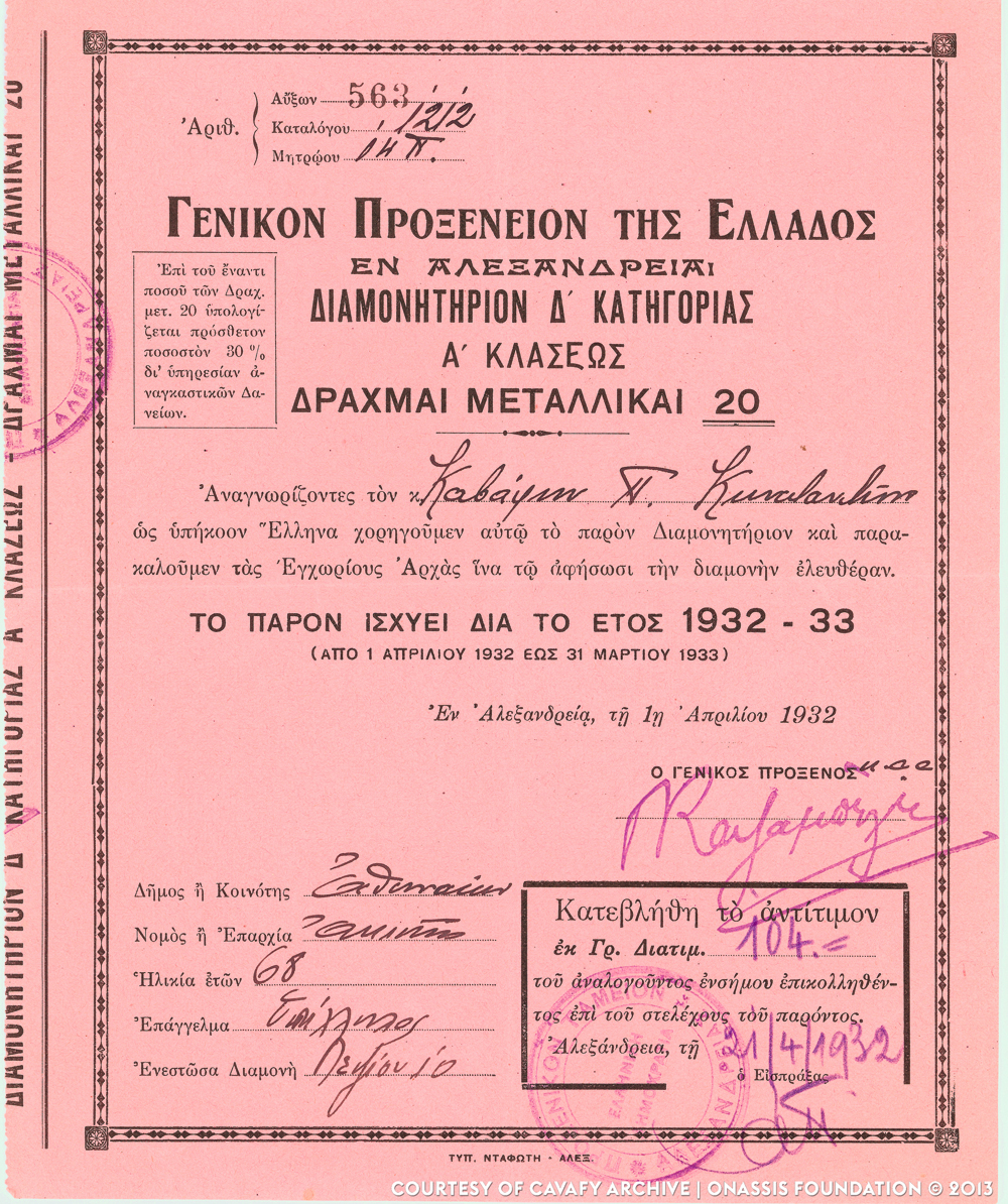 Ευγενική παραχώρηση του Ιδρύματος Ωνάση από το Αρχείο Καβάφη.