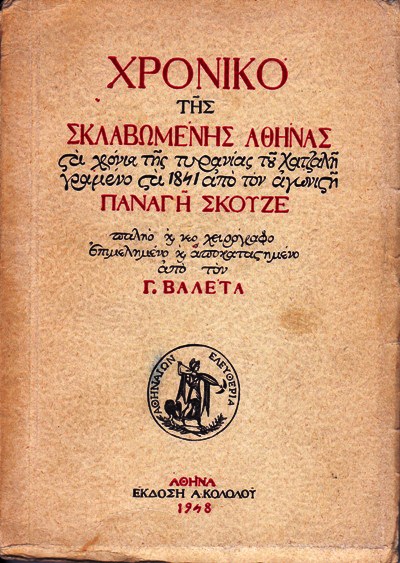 Θανάσης Χ. Παπαδόπουλος, «Εισαγωγικά». Παναγής Σκουζές, Απομνημονεύματα. Η τυραννία του Χατζή-Αλή Χασεκή στην τουρκοκρατούμενη Αθήνα (1772-1796), επιμ.-εισαγ.-σχόλια: Θανάσης Χ. Παπαδόπουλος, Κέδρος, Αθήνα 1975, 27-28.