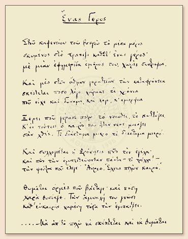 Ξανασυλλογίστηκα τον Καβάφη το Μάη του ’41, όταν, επιβάτης από την Κρήτη, πρωταντίκρισα την Αίγυπτο στο Πορτ Σαΐντ. Ήτανε σκοτεινές οι ώρες· έγραφα στο ημερολόγιό μου: