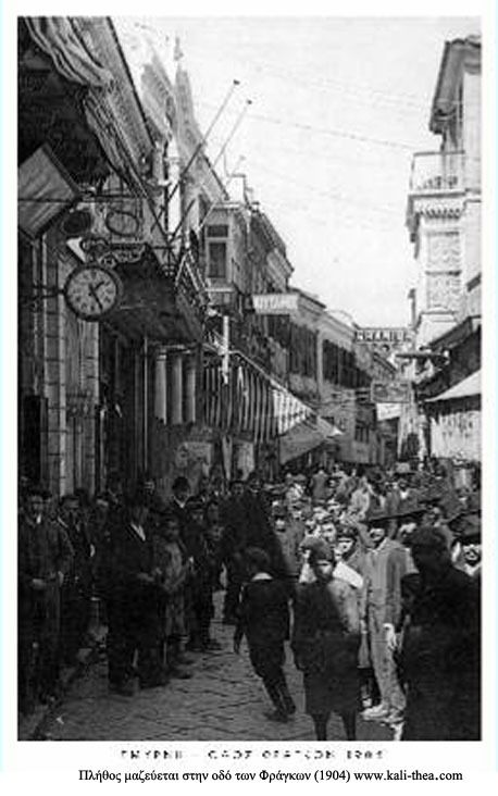 Ο κοσμοπολιτισμός της Σμύρνης έβρισκε την ανώτατη εκδήλωσή του στον πλούτο των εισαγόμενων και εξαγόμενων εμπορευμάτων, με αποτέλεσμα την ποικιλία επιλογών που απολάμβαναν οι Σμυρνιοί, καμαρώνοντας για την αγορά τους. Ο Φραγκομαχαλάς (Ευρωπαϊκή οδός, ή και Rue Franque, οδός δηλαδή των Φράγκων), συγκεντρώνει τα καλύτερα μαγαζιά της πόλης, με λογής προϊόντα που καταφθάνουν από την Ευρώπη. Είναι ο τόπος που οι ευκατάστατοι Σμυρνιοί όλων των εθνοτήτων αγοράζουν ό,τι καλύτερο και νεώτερο κυκλοφορεί.