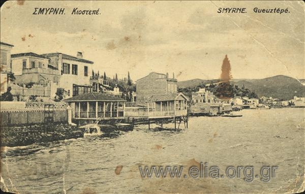 Αφήνοντας το κέντρο της Σμύρνης, σε απόσταση 5 χιλιομέτρων βρίσκεται το παραθαλάσσιο προάστιο του Γκιοζ-Τεπέ (ελληνική ονομασία Ενόπη). Το Γκιοζ Τεπέ συνδεόταν με τη Σμύρνη μέσω του τραμ αλλά και με βαποράκι. Η ειδυλλιακή του τοποθεσία προσέλκυσε αρκετούς ευκατάστατους Σμυρνιούς, κυρίως Έλληνες, αλλά και Αρμένιους, Τούρκους και Εβραίους, οι οποίοι εγκαταστάθηκαν στην περιοχή, χτίζοντας εξοχικές κατοικίες στην ακτή του προαστίου. Το προάστιο διέθετε ορθόδοξη και καθολική εκκλησία.