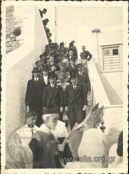 Ο ανήφορος, ο αντίθετος βίαιος άνεμος κι οι στοχασμοί την είχαν αναγκάσει να περπατάει με κεφάλι σκυφτό. Κι όταν έξαφνα το ανάγυρε, αντίκρισε το μεγάλο κάτασπρο κτίριο της Παναγίας. Στάθηκε να το κοιτάξει, να το κρίνει. Τίποτα το εξαιρετικό από άποψη αισθητική. Ο ακαλλιέργητος αρχιτέκτονας, αντί να εμπνευσθεί από τα θαυμαστά πρότυπα των κυκλαδίτικων ναών, θέλησε να κάνει δουλειά «ευρωπαϊκή» κι αντέγραψε, με πολύ κακό γούστο, τις γραμμές που συναπαντούμε στις εκκλησίες της Νότιας Ιταλίας. Οπωσδήποτε το σύνολο είχε κάποια μεγαλοπρέπεια, έκανε κάποιαν εντύπωση.