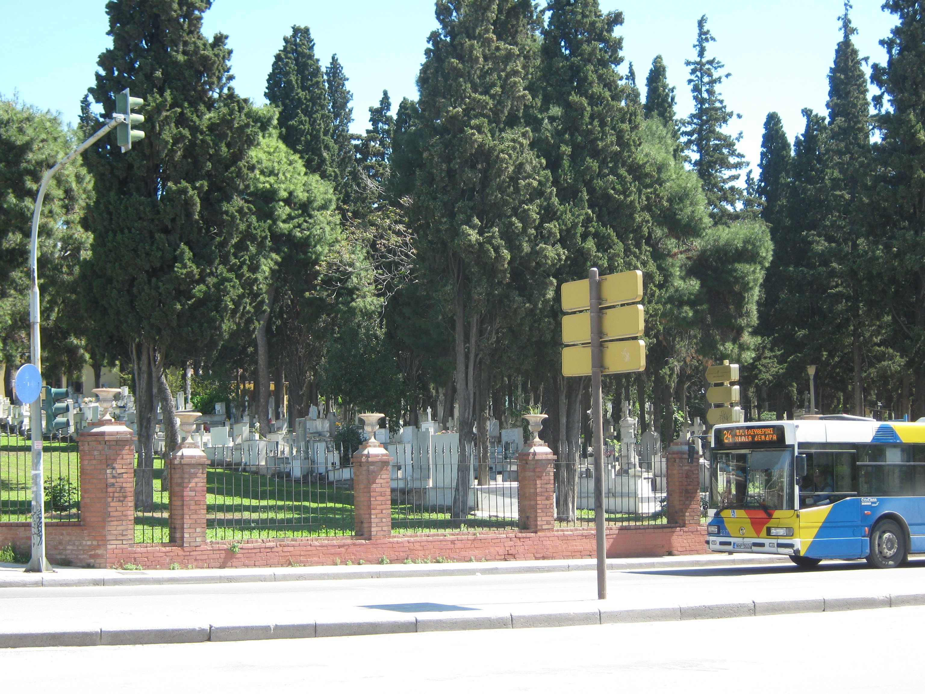 Πρόκειται για το πρώτο οργανωμένο χριστιανικό νεκροταφείο της πόλης (19ος αιώνας). Σήμερα αποτελεί Μνημείο της Νεότερης Ιστορίας καθώς εκεί βρίσκονται οι τάφοι προσώπων που διαδραμάτισαν σημαντικό ρόλο στην ιστορία της πόλης. Στην ίδια περιοχή βρίσκονται ακόμη το νεκροταφείο των Αρμενίων και αυτό των Προτεσταντών.