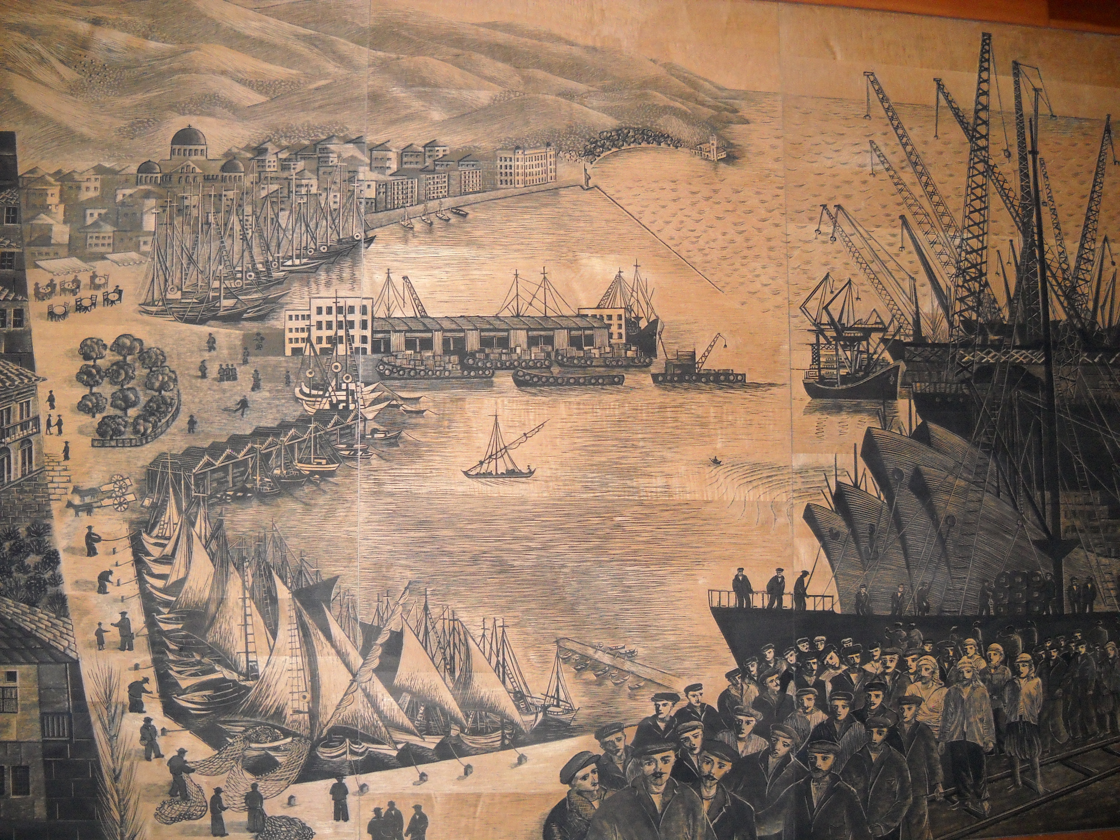 Στα τέλη του 19ου αιώνα η πόλη του Βόλου σπάει τα σύνορα του οθωμανικού Κάστρου της και απλώνεται κατά μήκος της παραλίας. Με την κατασκευή του λιμανιού και την ανάπτυξη της εμπορικής κίνησης η πόλη αρχίζει να συγκροτεί σταδιακά τον αστικό και στη συνέχεια το βιομηχανικό χαρακτήρα της. Στην υποενότητα αυτή τα πρώτα κατασκευαστικά έργα δίνουν τη θέση τους σε πανύψηλους γερανούς και εξηγούν τη διαμόρφωση της κοινωνικής διαστρωμάτωσης και την ανάδειξη του πρωτοποριακού αέρα που πνέει στην πόλη.