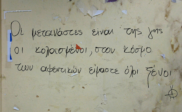 «Οι μετανάστες είναι της γης οι κολασμένοι». «Αλληλεγγύη στους μετανάστες. Solidarity to the immigrants» άκουγε και διάβαζε στα πανό.