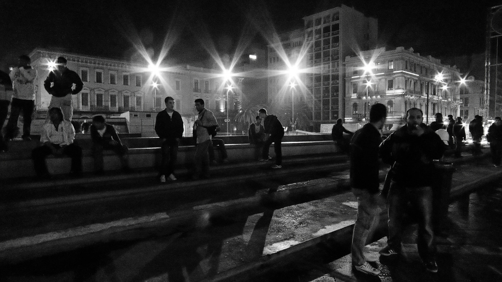 Η Ομόνοια τραβάει τους Αλβανούς —περισσότερο από τούς άλλους μετανάστες και πρόσφυγες— σαν το άνθος τις μέλισσες. Κατά κάποιο τρόπο έχουν κάνει μιαν άτυπη κατάληψη της πλατείας, την οποία μέχρι το 1990 νέμονταν αποκλειστικά οι Έλληνες. Οι Αλβανοί είναι ευδιάκριτοι μέσα στο κινούμενο ή ακίνητο πλήθος που πλημμυρίζει τον ομφαλό της πόλης. Τους γνωρίζεις από το λιπόσαρκο κορμί, το στεγνό πρόσωπο, το ξανθωπό χρώμα των μαλλιών, την ακατανόητη ομιλία, την επιφυλακτικότητα στην έκφραση και την όψη αγριμιού. Το 1980 οι μοναδικοί αλλοδαποί θαμώνες της Ομόνοιας ήταν οι Άραβες, οι οποίοι ξεχώριζαν στο πλήθος σαν τη μύγα μες στο γάλα. Τους έκανε αναγνωρίσιμους το χρώμα της επιδερμίδας τους. Ο Γιώργος Ιωάννου, που τους είχε γνωρίσει από κοντά —θήτευσε ως καθηγητής σε αραβική χώρα—, εξομολογείται πως τους πλησίαζε για να τους ακούσει να μιλάνε τη γλώσσα τους και για να μυρίσει «την αράπικη μυρωδιά του κορμιού και των ρούχων».