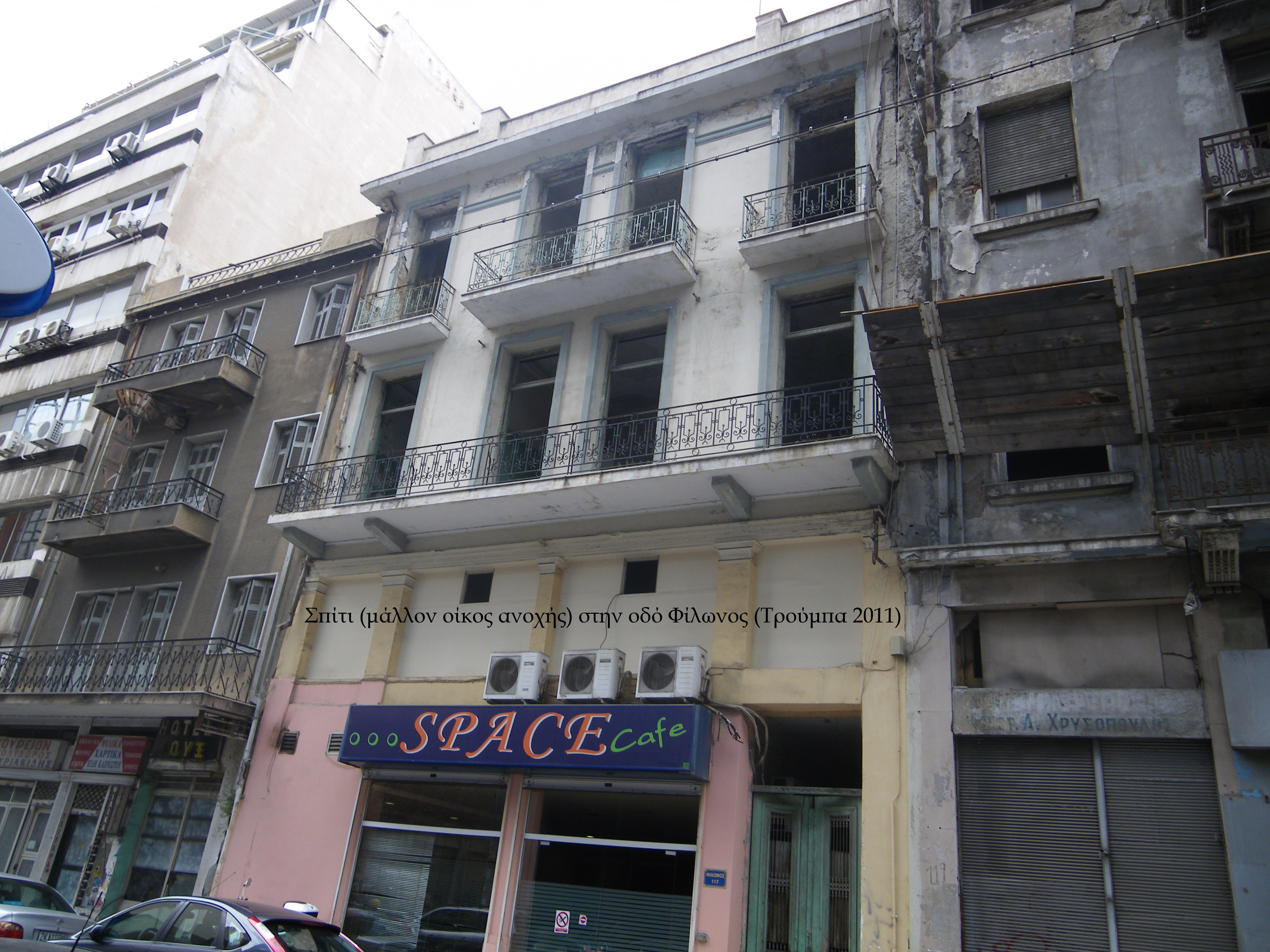 Σήμερα είναι κλειστό, σκοτεινό και άραχνο. Σκουπιδότοπος ο διάδρομος και η πόρτα του κλειστή, με αλυσίδες και λουκέτα. Σκουριά, βρώμα και θλίψη.