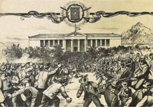 Απεικόνιση των επεισοδίων στον τύπο της εποχής [πηγή: Wikimedia Commnons]