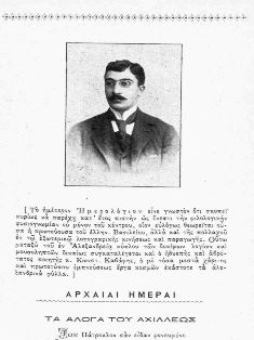 Η φωτογραφία προηγείται της δημοσίευσης των ποιημάτων «Τα άλογα του Αχιλλέως» και ο «Οράτιος εν Αθήναις» (με επίτιτλο «Αρχαία Ημέραι») και «Ένας γέρος» (με επίτιτλο «Ehue fugaces»). Οι επίτιτλοι αυτοί είναι ενδεικτικοί των θεματικών κεφαλαίων στα οποία κατέτασσε ο Καβάφης τα πρώιμα ποιήματά του: «Αρχαίαι Ημέραι», «Βυζαντιναί Ημέραι», «Αι αρχαί του Χριστιανισμού», «Ο Άρχων της Ηπείρου», «Πάθη», «Έτη πτερόεντα», «Φυλακαί», «Η Τέχνη μας», «Τρεις εικόνες».