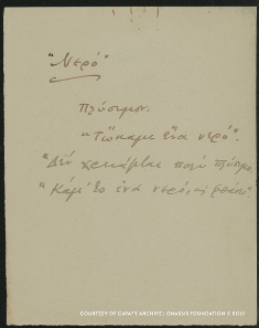 Χειρόγραφο. Ευγενική παραχώρηση του Ιδρύματος Ωνάση από το Αρχείο Καβάφη. Το περιεχόμενο αποτελεί ιδιοκτησία του Ιδρύματος Ωνάση και προστατεύεται από το νόμο.