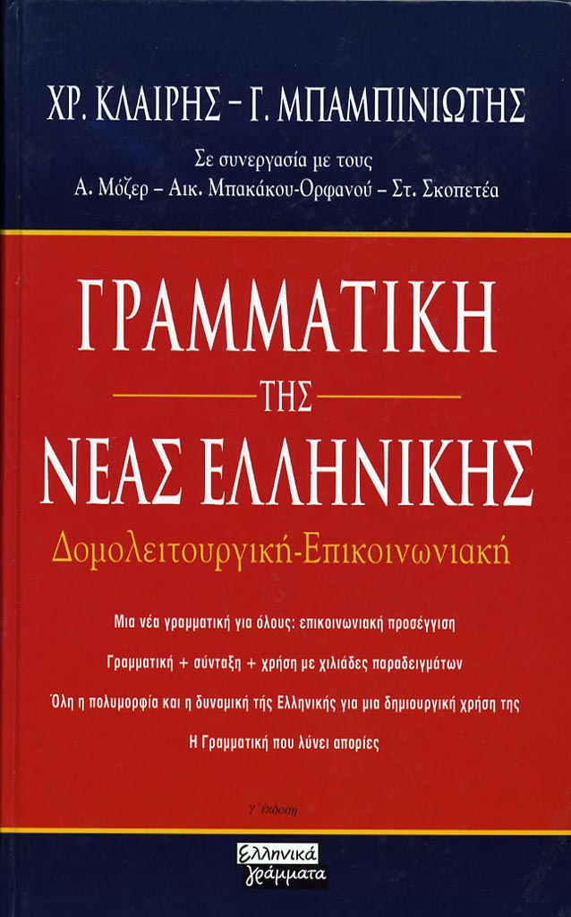 Χρήστος Κλαίρης - Γεώργιος Μπαμπινιώτης. Γραμματική της Νέας Ελληνικής. Δομολειτουργική - Επικοινωνιακή.