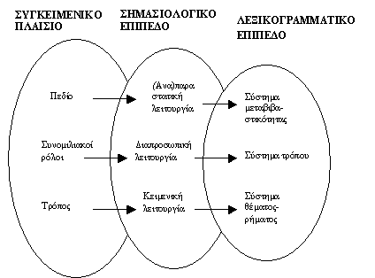 Σχήμα 3: Σχέση συγκειμενικού πλαισίου, σημασιολογικού και λεξικογραμματικού επιπέδου