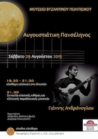 Το Σάββατο 29 Αυγούστου 2015 το Μουσείο Βυζαντινού Πολιτισμού, στο πλαίσιο του εορτασμού της Αυγουστιάτικης Πανσελήνου, που διοργανώνεται κάθε χρόνο από τη Γενική Διεύθυνση Αρχαιοτήτων & Πολιτιστικής Κληρονομιάς του Υπουργείου Πολιτισμού Παιδείας και Θρησκευμάτων, θα φιλοξενήσει στο αίθριο του Μουσείου τον διεθνούς φήμης κιθαρίστα Γιάννη Ανδρόνογλου.