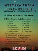 Μυστικά Τοπία. Ημέρα ποίησης αφιερωμένη στον Γιάννη Κοντό (20/3/16)