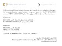 Το Αρχαιολογικό Μουσείο Θεσσαλονίκης και η Εταιρία Λογοτεχνών Θεσσαλονίκης σας προσκαλούν στην παρουσίαση του ποιητικού έργου του Πάνου Κυπαρίσση από την Τιτίκα Δημητρούλια, Αν. Καθηγήτρια Α.Π.Θ., Κριτικό Λογοτεχνίας. Η εκδήλωση θα γίνει τη Δευτέρα 15 Μαΐου 2017 και ώρα 19.30, στο Αρχαιολογικό Μουσείο Θεσσαλονίκης.