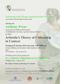 Την Τετάρτη 25 Ιουνίου 2014 και ώρες 7.00-9.00 μ.μ. θα πραγματοποιηθεί διάλεξη του διακεκριμένου Καθηγητή Φιλοσοφίας στο Πανεπιστήμιο Binghamton της Νέας Υόρκης, Anthony Preus, στο πλαίσιο του 2oυ "Διεθνές Colloquium για τον Αριστοτέλη". Η διάλεξη θα γίνει στο Κέντρο Διάδοσης Ερευνητικών Αποτελεσμάτων (ΚΕ.Δ.Ε.Α.), Αμφ. 3, 1ης Σεπτεμβρίου – Πανεπιστημιούπολη Α.Π.Θ.