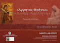 Ο Δήμαρχος Θεσσαλονίκης Γιάννης Μπουτάρης, ο Πρόεδρος και τα μέλη της Εφορευτικής Επιτροπής του Βαφοπούλειου Πνευματικού Κέντρου και η Προϊσταμένη της Εφορείας Αρχαιοτήτων Πέλλας σας προσκαλούν στο θεατρικό αναλόγιο «Άρρητος Θρήνος – Λύπη Αμίλητη», που θα παρουσιαστεί την Παρασκευή 22 Απριλίου 2016, ώρα 20.00, στο Βαφοπούλειο Πνευματικό Κέντρο (Αίθουσα Θεάτρου, Γ.Βαφόπουλου 3, τηλ. 2310 424132-3).