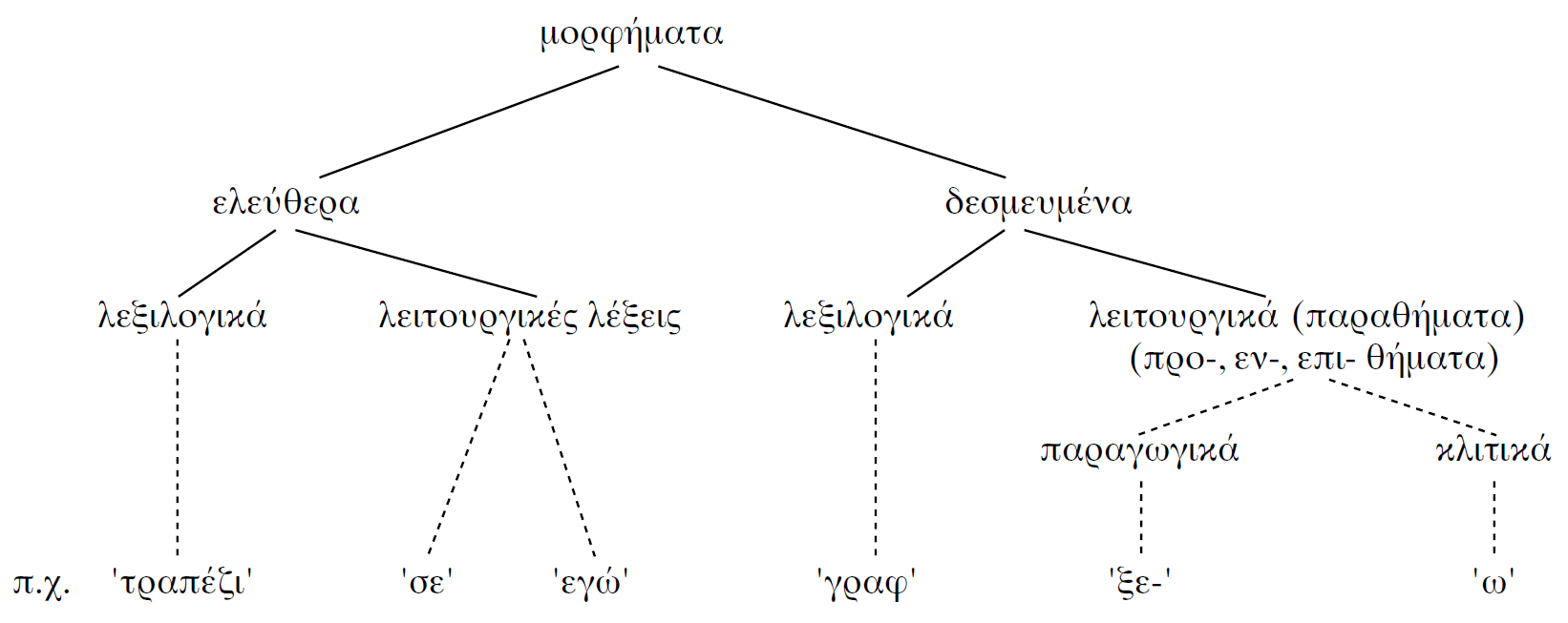 – Oι λέξεις αποτελούνται απο ένα ή περισσότερα μορφήματα. Tα μορφήματα είναι τα μικρότερα τμήματα λόγου με σημασία ή συνταχτική λειτουργία.