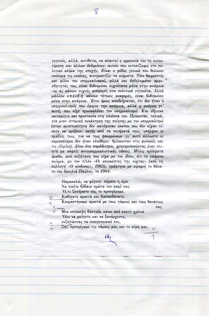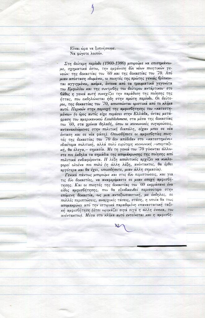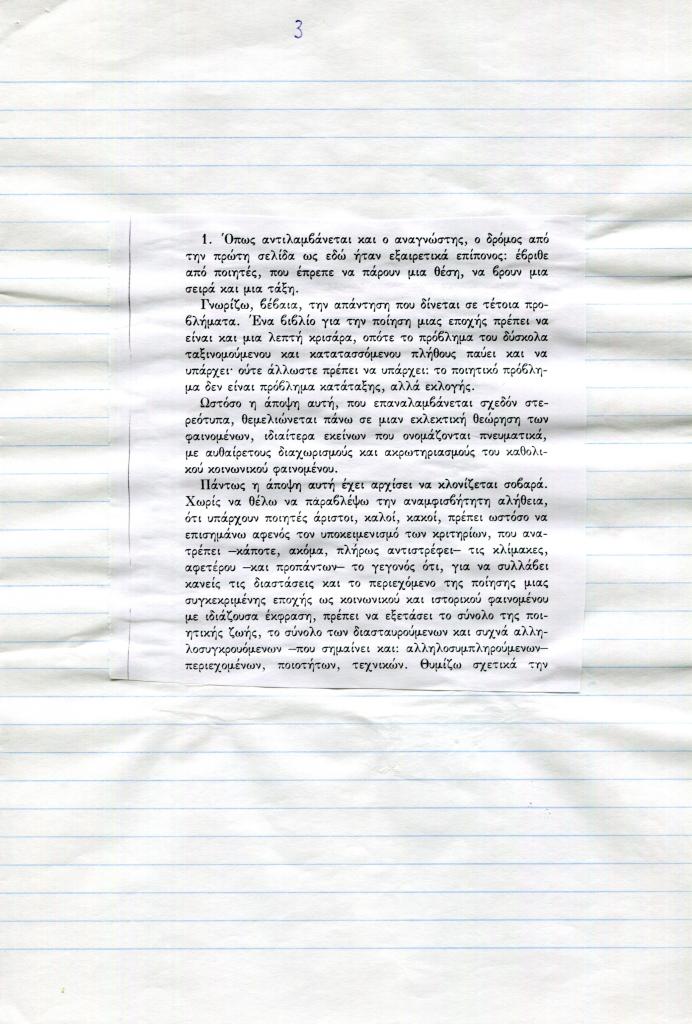 Τούτη η βαρειά συναίσθηση ευθύνης, που δεν κληρονομήθηκε, αλλά σου δίνεται από τα ίδια τα πράγματα, σε κρατά σε μια διαρκή εγρήγορση, δε σ’ αφήνει στιγμή ησυχίας. Πρέπει να επιλύσεις μέσα σου τη διαφορά μεταξύ του καθαρά νοητικού αντικρύσματος, από μια πλευρά και του ψυχικού από την άλλη, ώστε φέρνοντας σ’ ισοζυγία τούτα τα δύο να κατορθώσεις να δεις σαν αυθύπαρκτο πνευματικό γεγονός την περίπτωσή σου μέσα στον κόσμο, αλλά και σε συσχετισμό με το περιβάλλον.