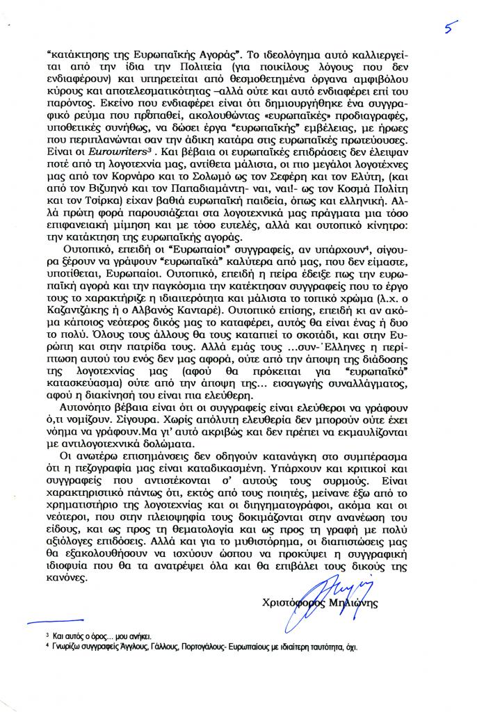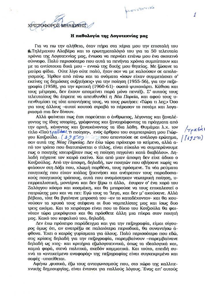 Χριστόφορος Μηλιώνης, Η παθολογία της λογοτεχνίας μας