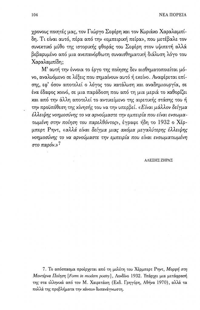 Τούτη η βαρειά συναίσθηση ευθύνης, που δεν κληρονομήθηκε, αλλά σου δίνεται από τα ίδια τα πράγματα, σε κρατά σε μια διαρκή εγρήγορση, δε σ’ αφήνει στιγμή ησυχίας. Πρέπει να επιλύσεις μέσα σου τη διαφορά μεταξύ του καθαρά νοητικού αντικρύσματος, από μια πλευρά και του ψυχικού από την άλλη, ώστε φέρνοντας σ’ ισοζυγία τούτα τα δύο να κατορθώσεις να δεις σαν αυθύπαρκτο πνευματικό γεγονός την περίπτωσή σου μέσα στον κόσμο, αλλά και σε συσχετισμό με το περιβάλλον.