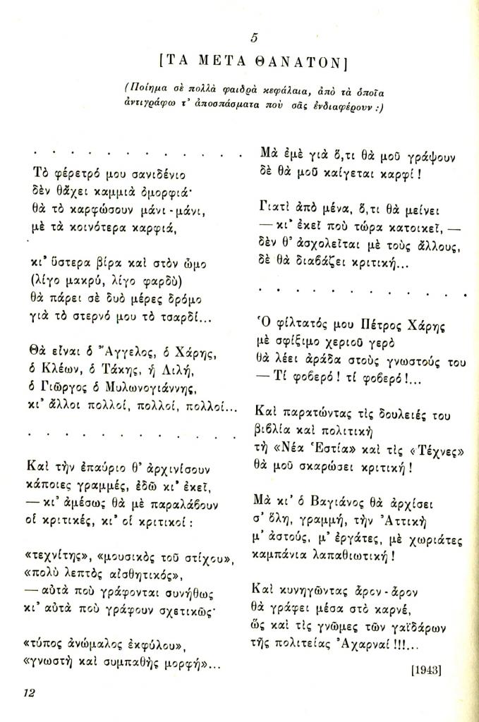 , «Ανέκδοτα κείμενα. Ι. Ποιήματα, 5 [Τα μετά θάνατον]»,