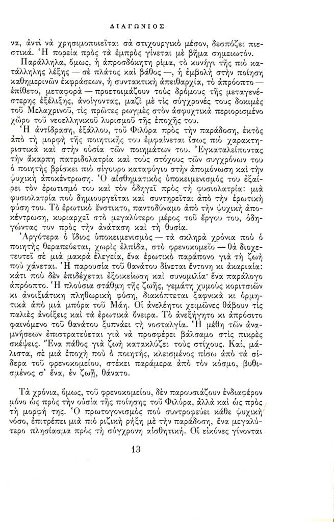 Κόρφης Τάσος, «Ρώμος Φιλύρας», Διαγώνιος, τχ. 5 (Ιανουάριος-Μάρτιος 1966), σ. 11-14
