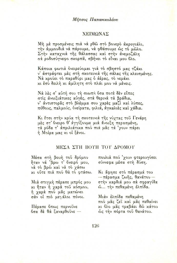 Παπανικολάου Μήτσος, «Χειμώνας», Διαγώνιος, τχ. 7 (Ιούλιος-Σεπτέμβριος 1966), σ. 126