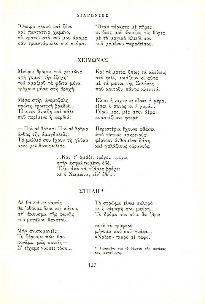 Παπανικολάου Μήτσος, «Χειμώνας», Διαγώνιος, τχ. 7 (Ιούλιος-Σεπτέμβριος 1966), σ. 127
