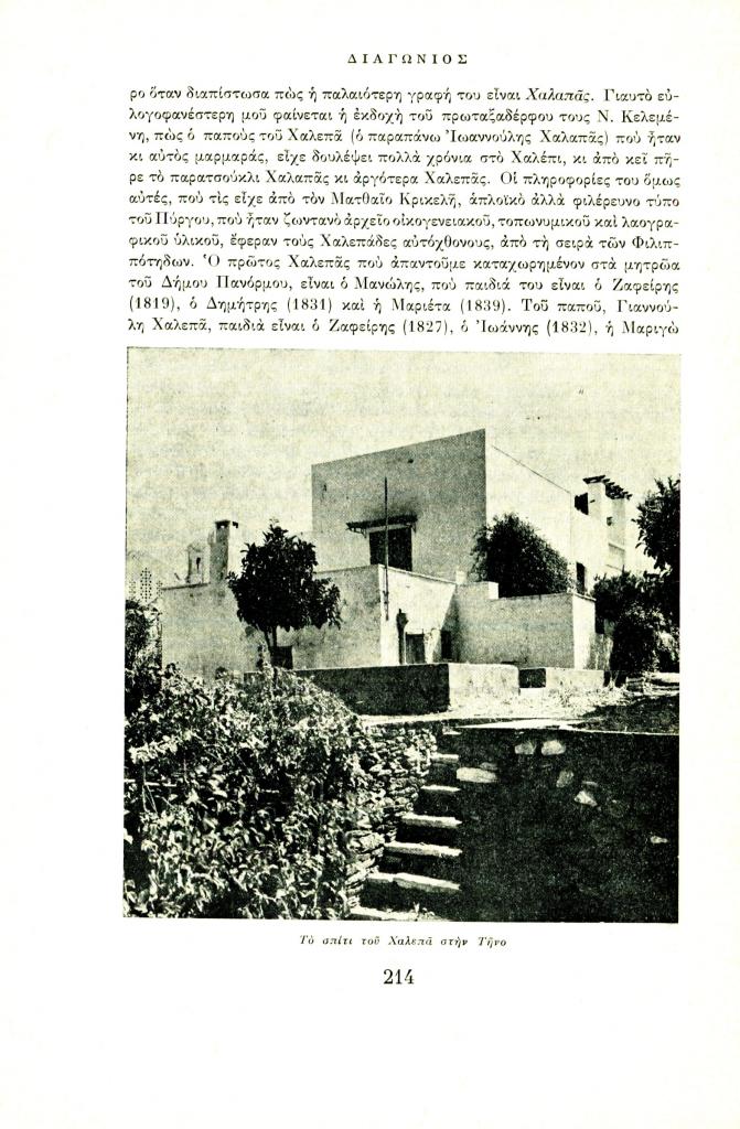 (ανυπόγραφο), «Το σπίτι του Χαλεπά στην Τήνο», Διαγώνιος, τχ. 8 (Οκτώβριος-Δεκέμβριος 1966), σ. 214