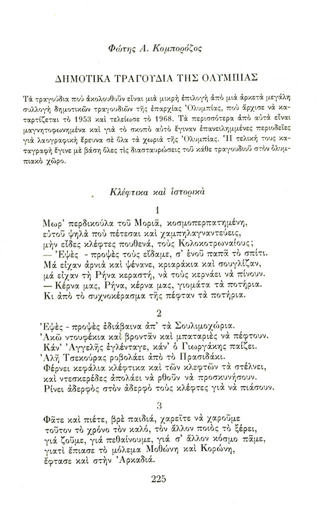 , «Δημοτικά τραγούδια της Ολυμπίας»,
