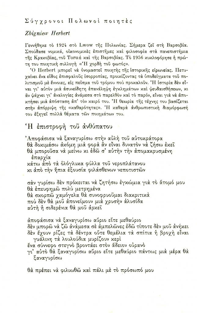 Herbert Zbigniew, «Η επιστροφή του ανθύπατου», Διαγώνιος, τχ. 1 (Ιανουάριος-Απρίλιος 1972), σ. 48-49