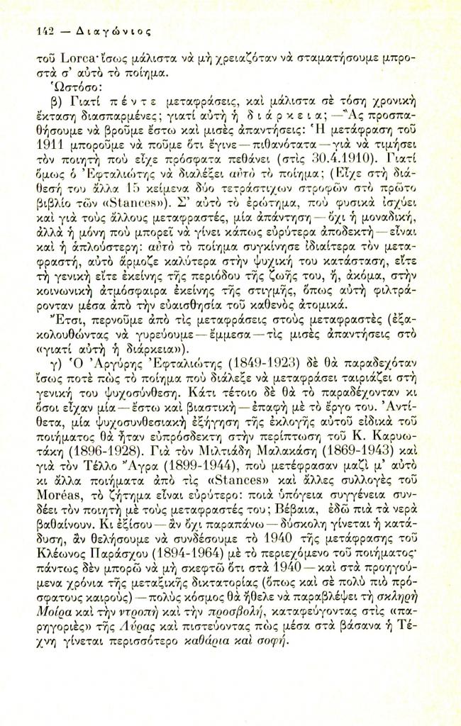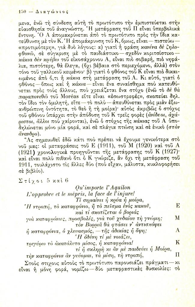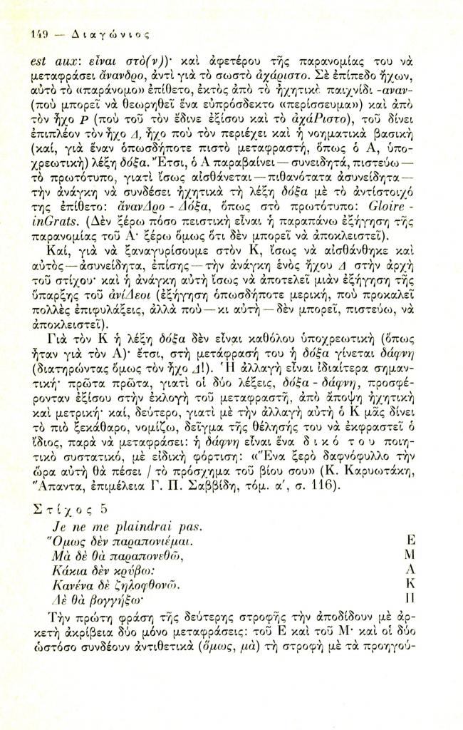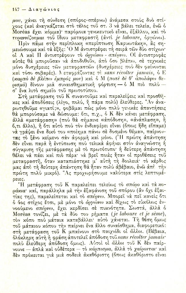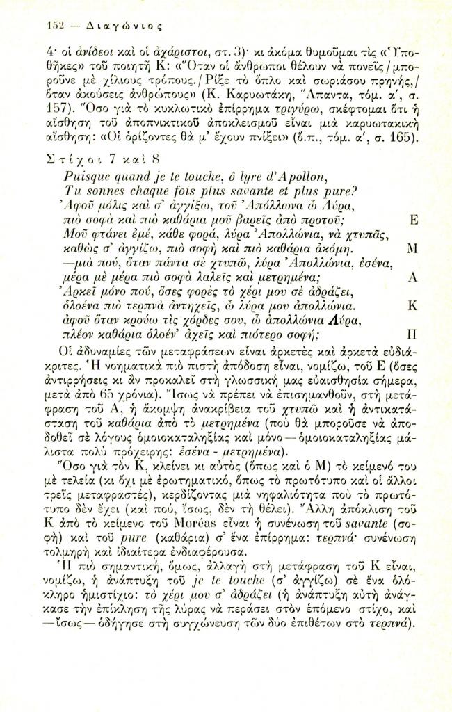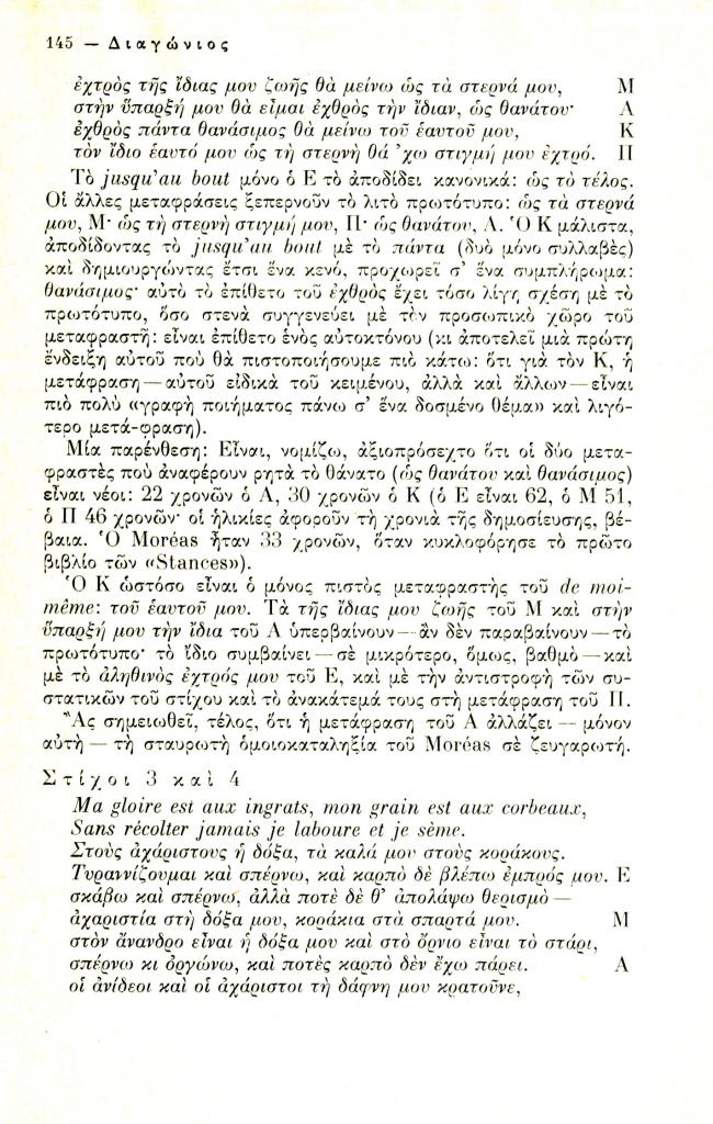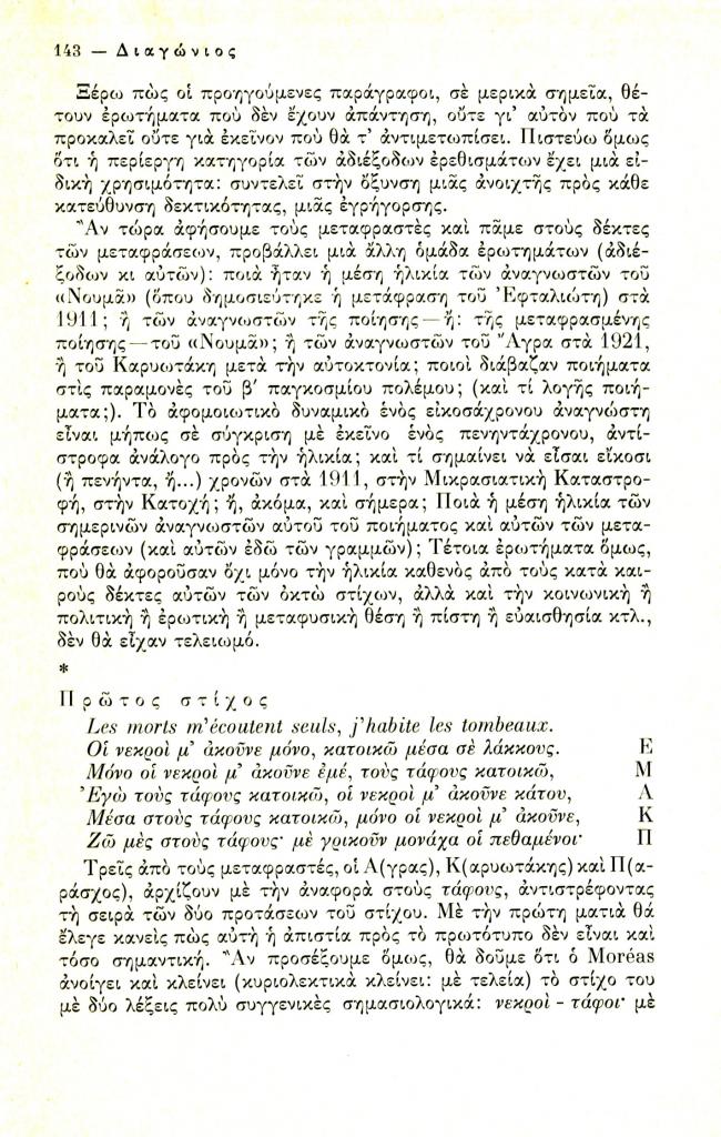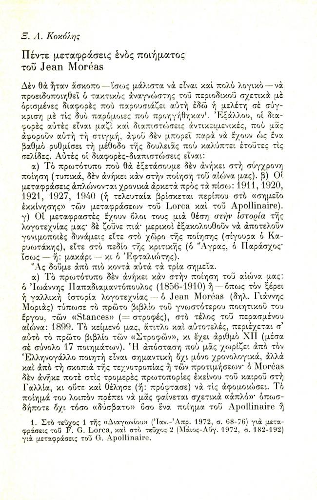 Κοκόλης Ξενοφών Α., «Πέντε μεταφράσεις ενός ποιήματος του Jean Moréas», Διαγώνιος, τχ. 11 (Μάιος-Αύγουστος 1975), σ. 141-153