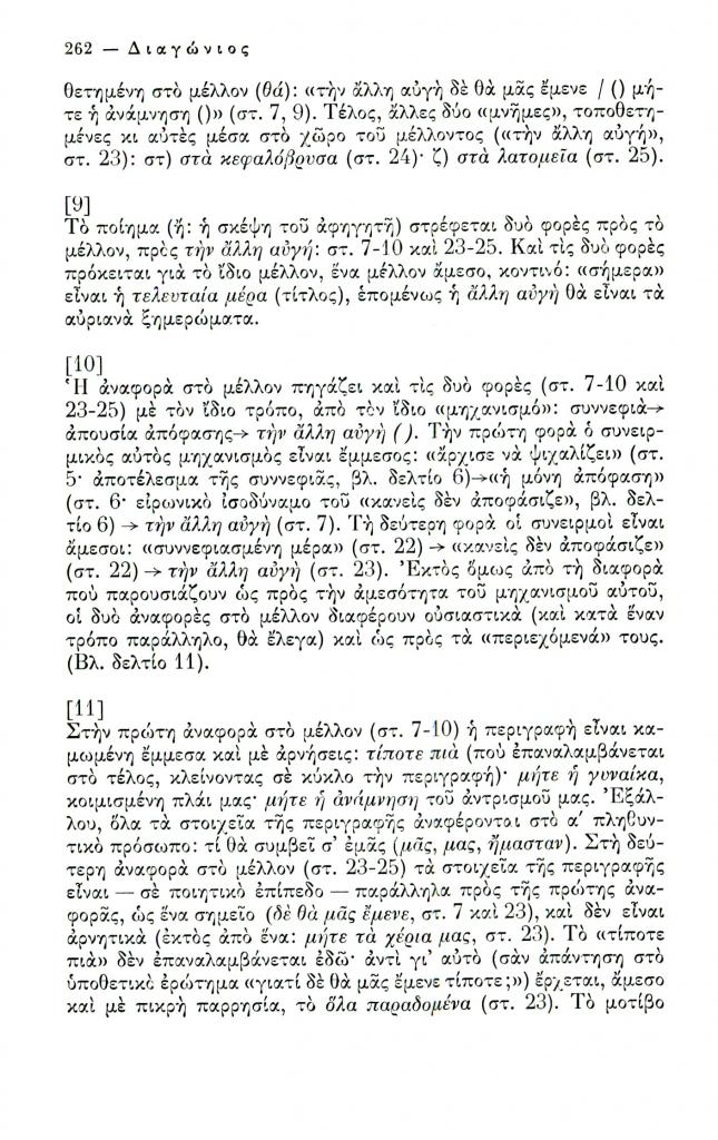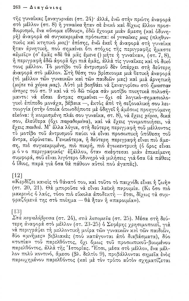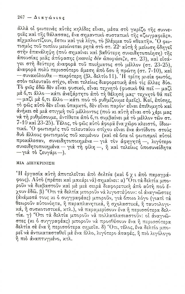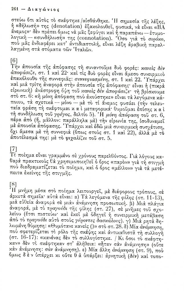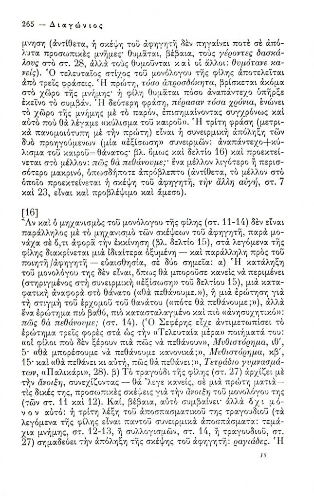 , «Δεκαεννέα δελτία για το ποίημα Η τελευταία μέρα του Γιώργου Σεφέρη», Διαγώνιος, τχ. 12 (Σεπτέμβριος-Δεκέμβριος 1975), σ. 258-267