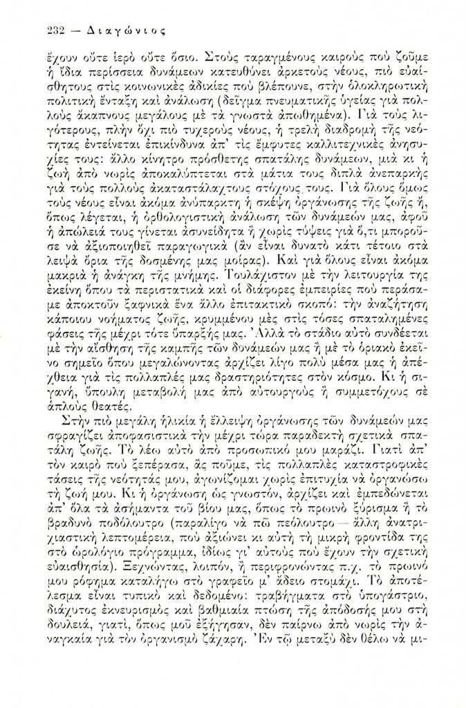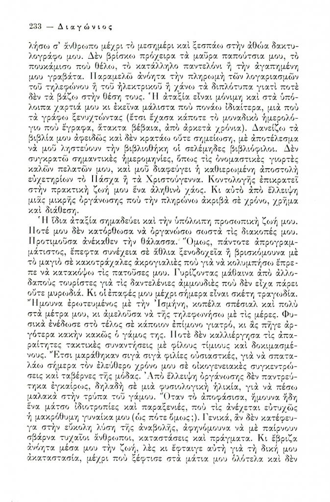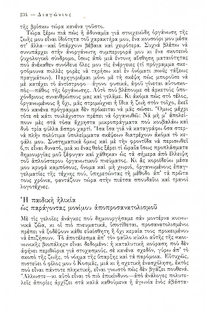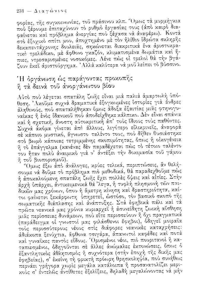 , «Η οργάνωση ως παράγοντας προκοπής ή τα δεινά του ανοργάνωτου βίου», Διαγώνιος, τχ. 15 (Σεπτέμβριος-Δεκέμβριος 1976), σ. 231-234