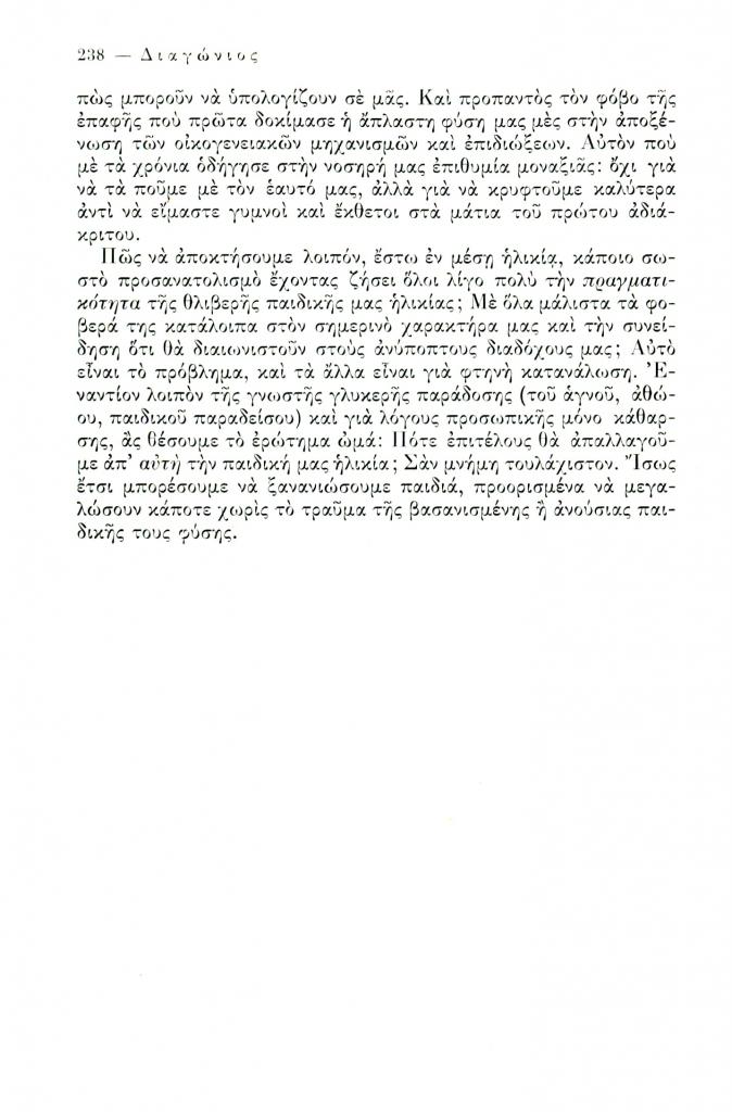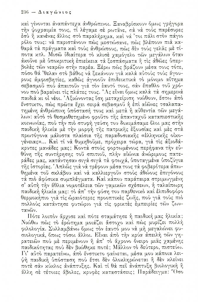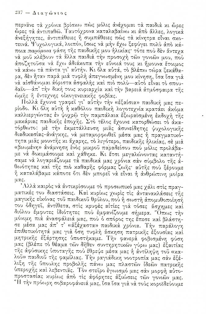 , «Η παιδική ηλικία ως παράγοντας μόνιμου αποπροσανατολισμού», Διαγώνιος, τχ. 15 (Σεπτέμβριος-Δεκέμβριος 1976), σ. 234-238