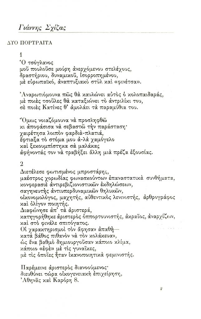 Σχίζας Γιάννης, «Δύο πορτραίτα», Διαγώνιος, τχ. 4 (Ιανουάριος-Απρίλιος 1980), σ. 17