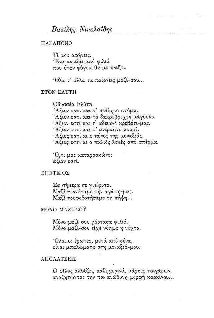 Νικολαΐδης Βασίλης, «Επέτειος», Διαγώνιος, τχ. 6 (Σεπτέμβριος-Δεκέμβριος 1980), σ. 260