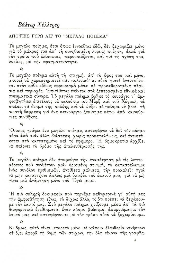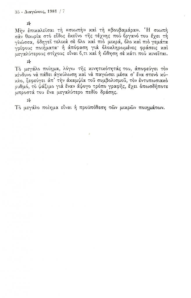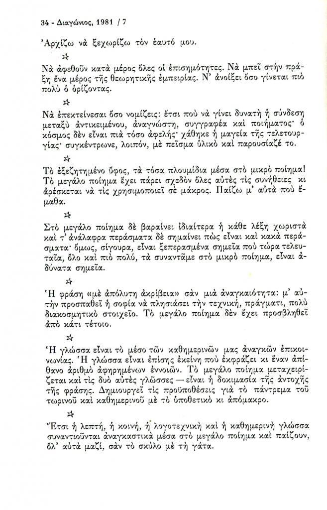 , «Απόψεις γύρω απ΄ το μεγάλο ποίημα»,