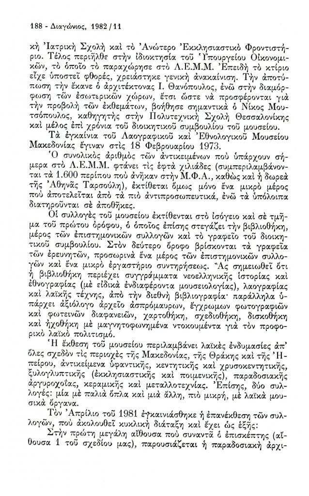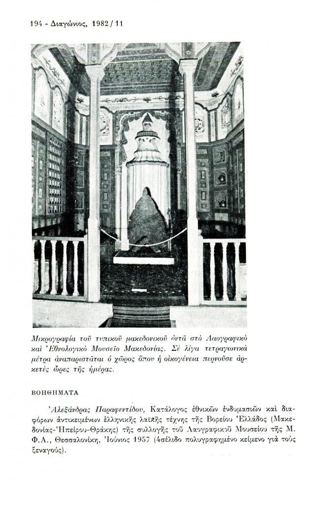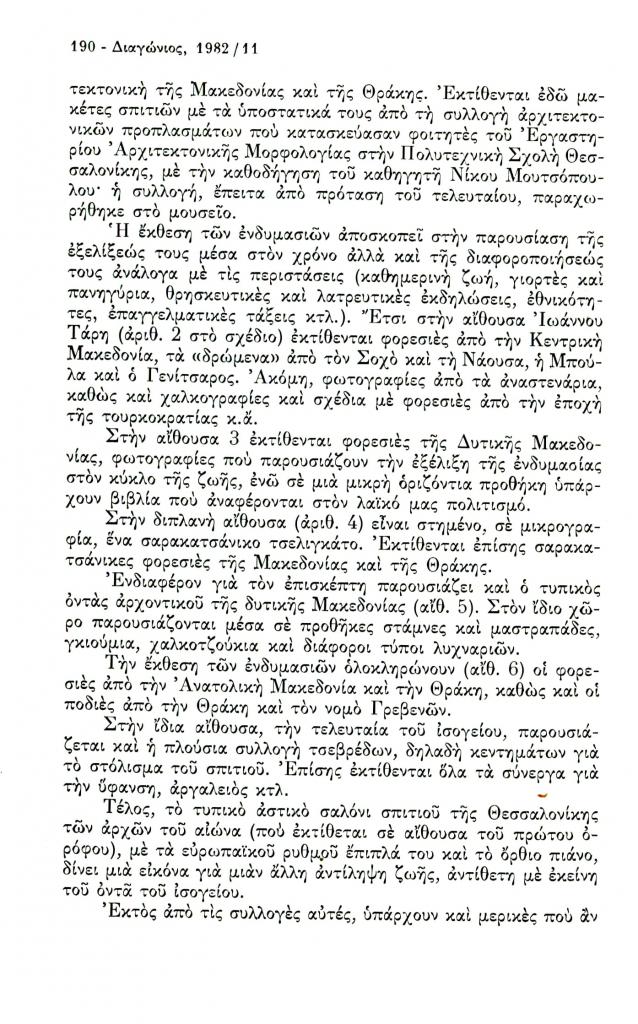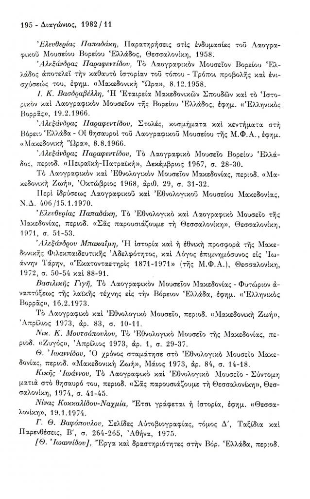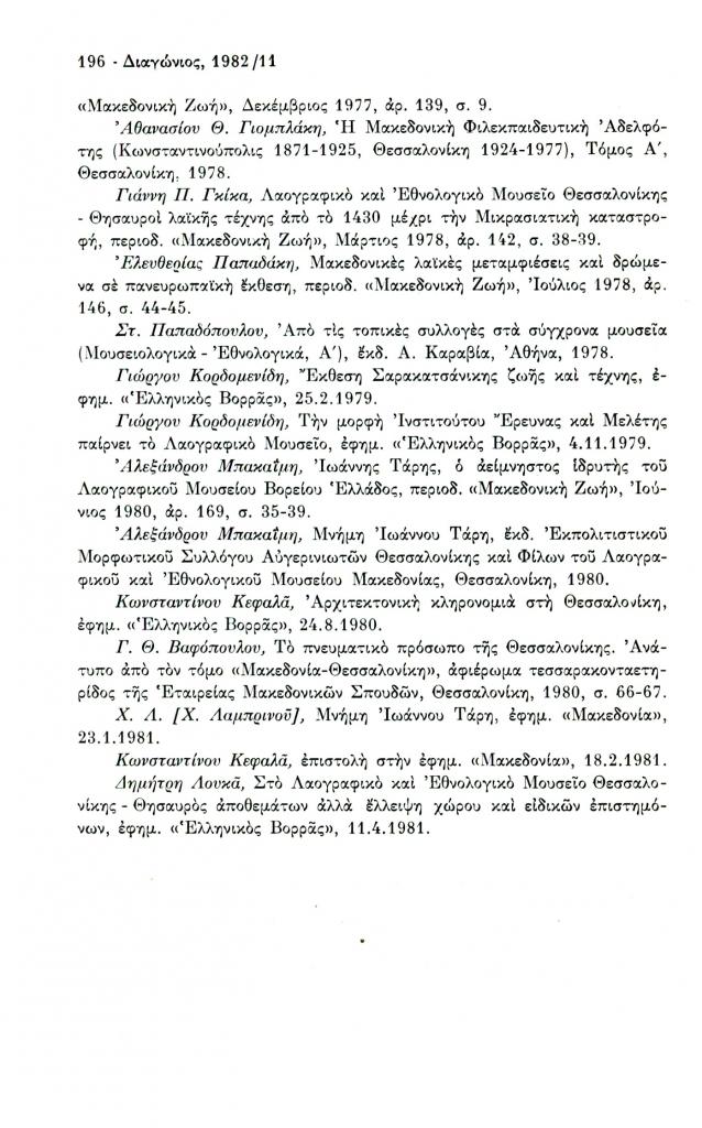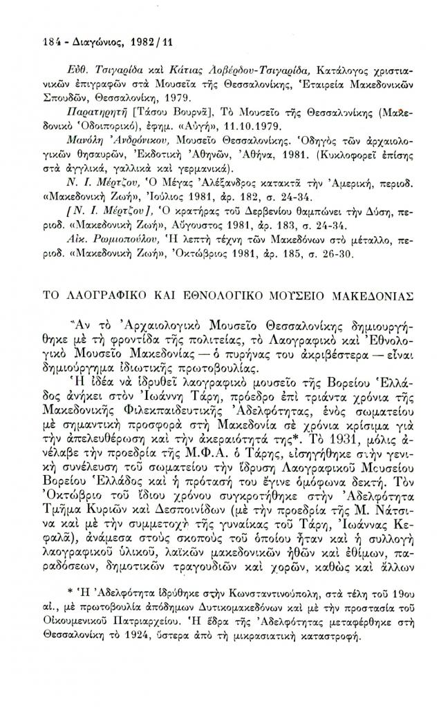 Κορδομενίδης Γιώργος, «Το Λαογραφικό και Εθνολογικό Μουσείο Μακεδονίας», Διαγώνιος, τχ. 11 (Μάιος-Αύγουστος 1982), σ. 184-196